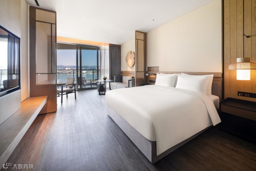 酒店共计拥有200余间温馨舒适的雅致客房(套房),可远眺万亩园林。45m²至180m²的宽阔客房空间,每个功能空间都做了合理的定义和规划,且均搭配有90°至270°的全景落地窗,将青龙湖的怡然景致完美呈现。同时酒店共计包含有两个风格迥异的中、西餐厅及一个品质大堂吧、一个独立茶坊,共同组成了酒店的飨味欢娱时光。