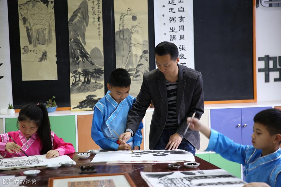 龙泉一小以洛带客家古镇的历史文化为基础,以水墨表现为载体,在课后服务时段开展水墨课程社团学习。