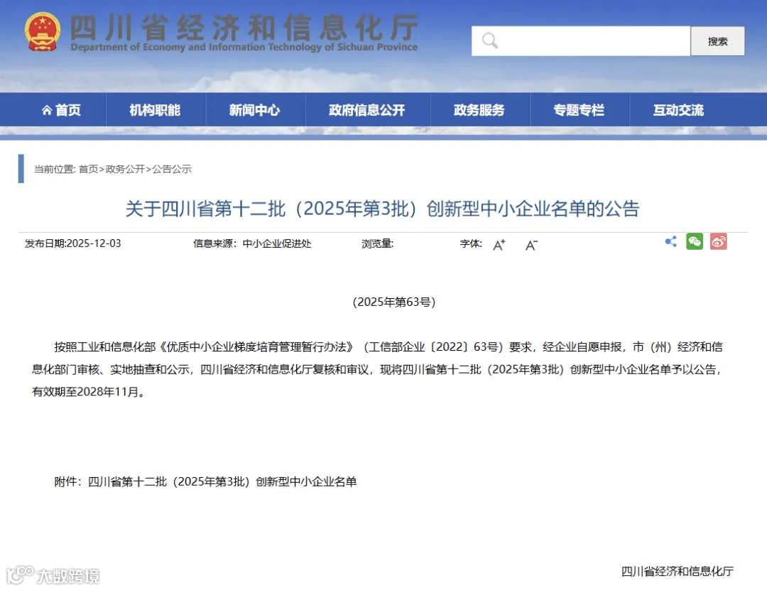 ▲四川省经济和信息化厅网站截图