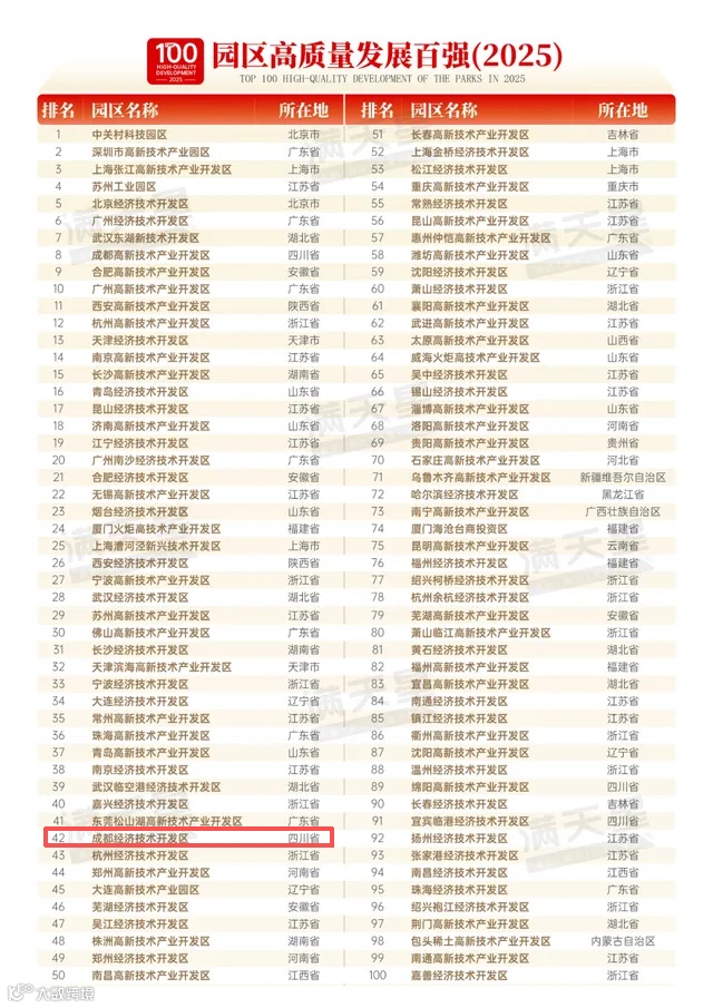 成都经济技术开发区排第42名