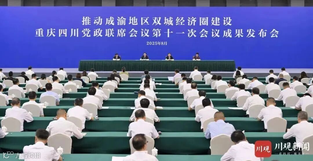 发布会前,两省市召开座谈会分别通报了2025年上半年经济社会发展情况,听取了《〈成渝地区双城经济圈建设规划纲要〉实施情况总结报告》情况、《成渝地区双城经济圈建设“十五五”建议实施方案》情况、重庆成都双核联动联建推进情况的汇报,审议了《川渝共建国际消费目的地行动计划(2025—2027年)》《关于支持保障成渝金融法院改革发展的方案》《重庆四川推动成渝地区双城经济圈建设工作机制》。