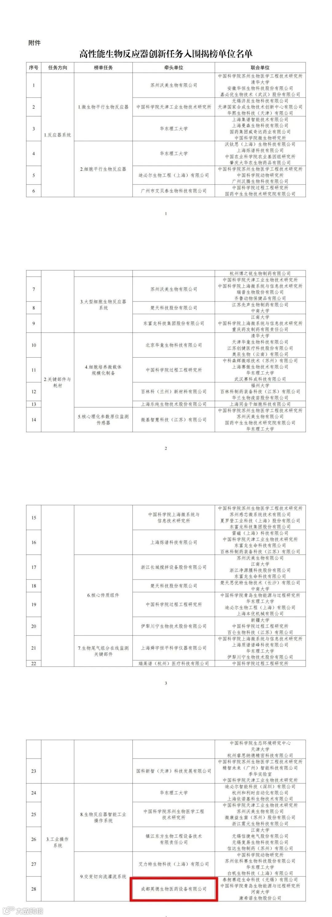 近日,工业和信息化部公示了高性能生物反应器创新任务揭榜挂帅拟入围单位名单。该项目工作旨在增强我国生物制造关键装备的供给保障能力,提升产业基础水平。