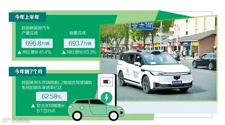 智能网联汽车是全球汽车产业转型升级的战略方向,正在推动产品形态、产业格局、基础设施和出行方式发生深刻变革。经过多年发展,我国智能网联汽车产业发展取得积极成效,电动化、智能化转型步伐持续加快。今年上半年,我国新能源汽车产销分别完成696.8万辆和693.7万辆,同比分别增长41.4%和40.3%。