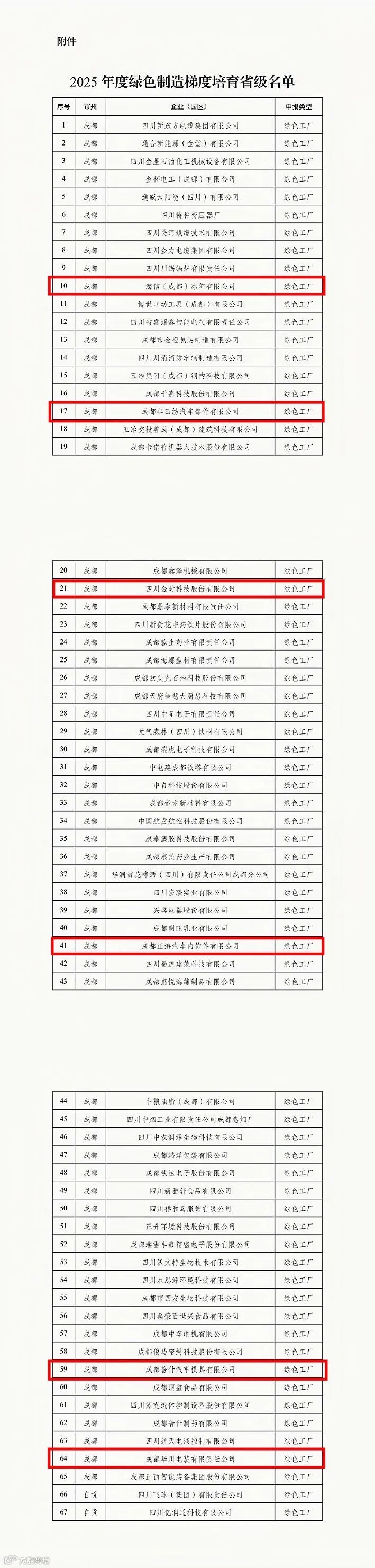 近日,四川省经济和信息化厅公布了2025年度绿色制造梯度培育省级名单。经企业(园区)评价、市(州)审核推荐、专家评审等程序,成都经开区(龙泉驿区)共有6家企业成功入选省级绿色工厂,为历年来单年度入选数量最多的一次!