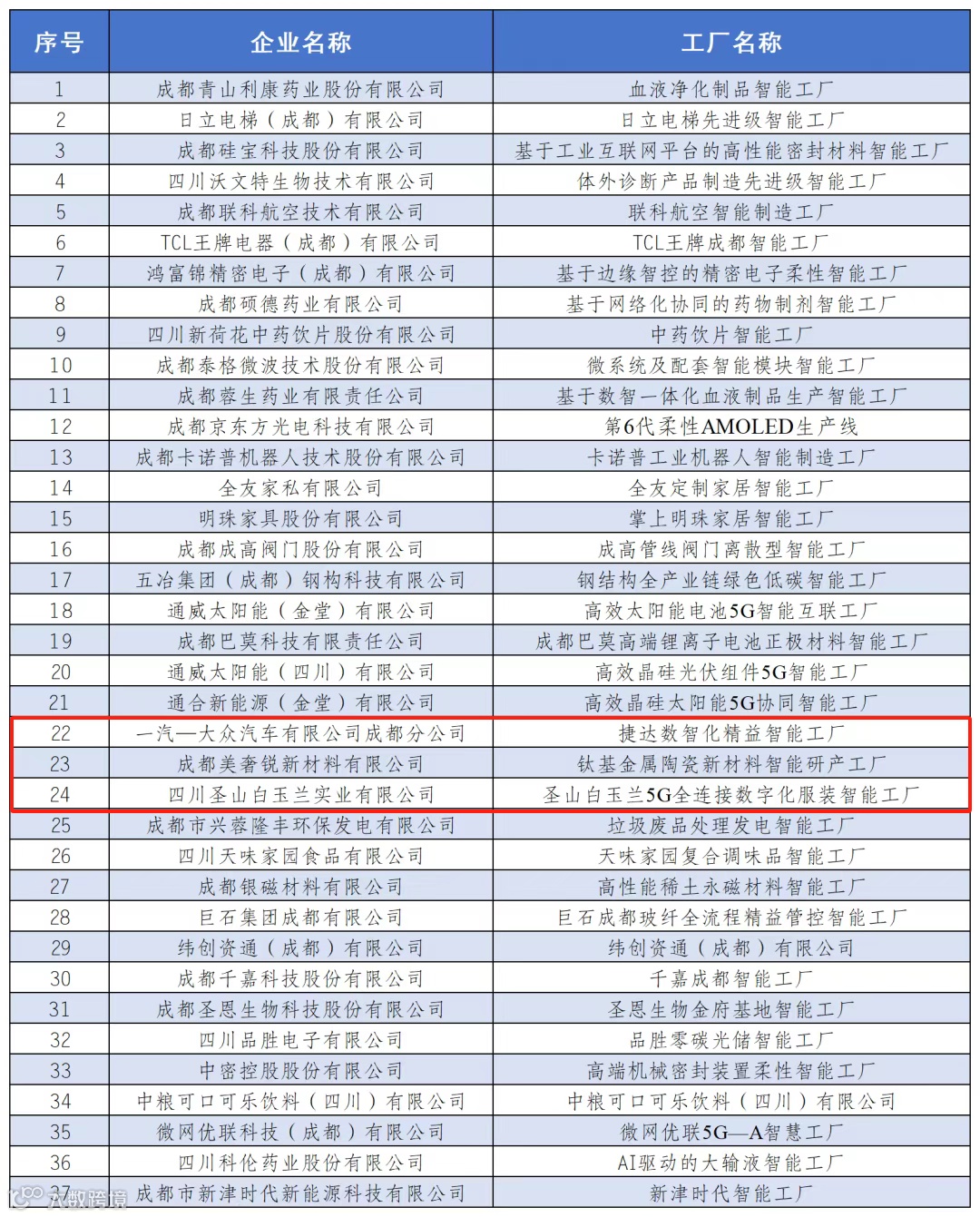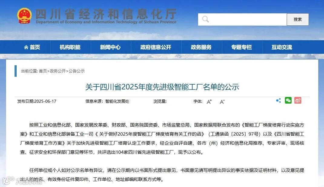 四川省2025年度先进级智能工厂名单