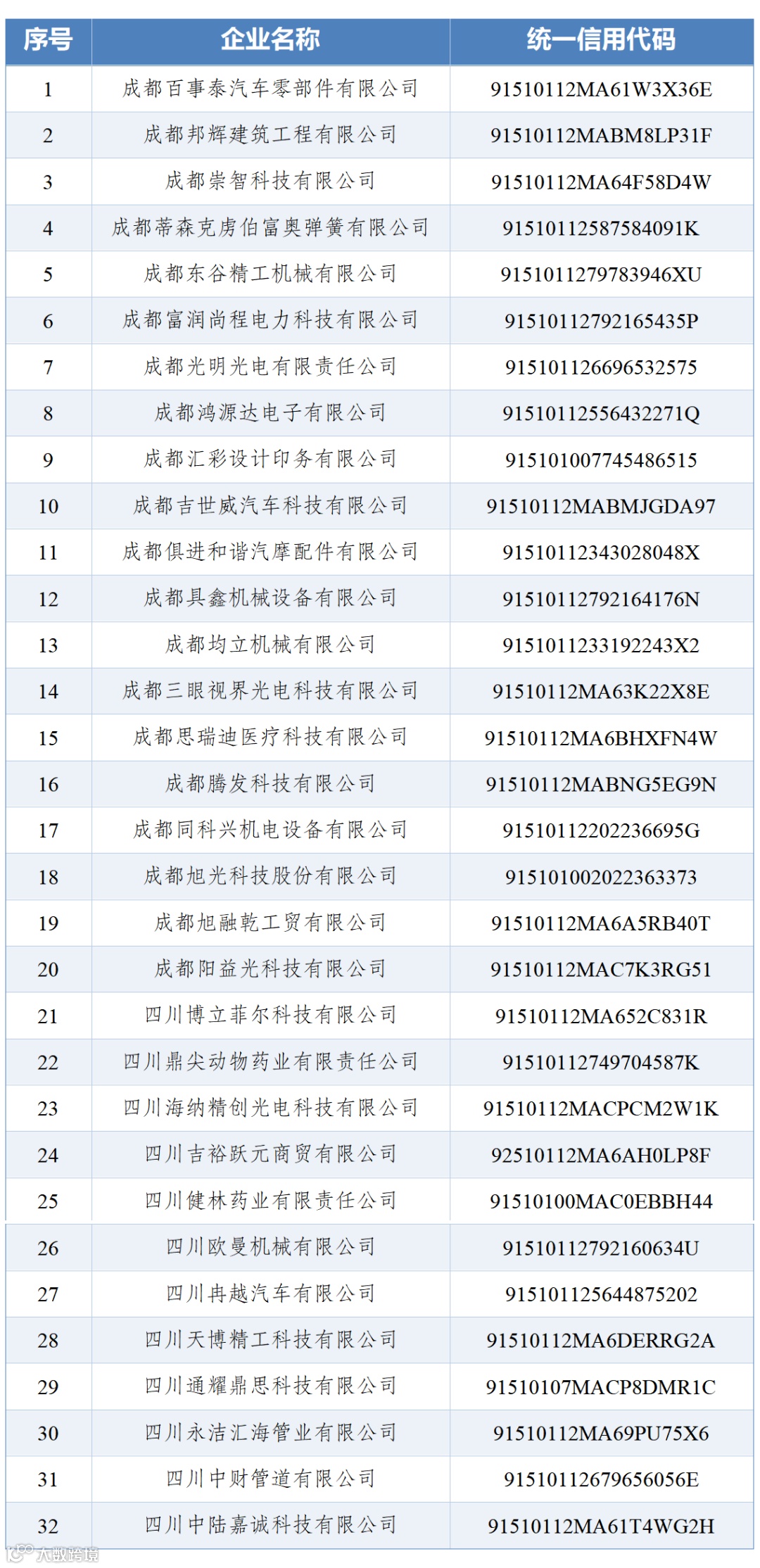 近日,四川省经济和信息化厅正式公告第十批创新型中小企业名单,该名单有效期至2028年4月。其中,我区成都百事泰汽车零部件有限公司等32家企业上榜。