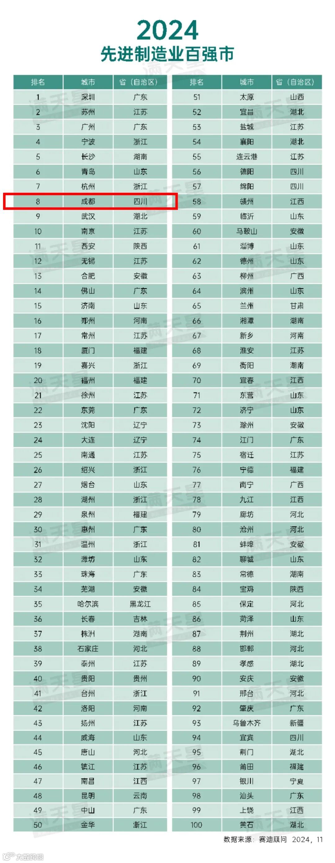 其中成都市上榜