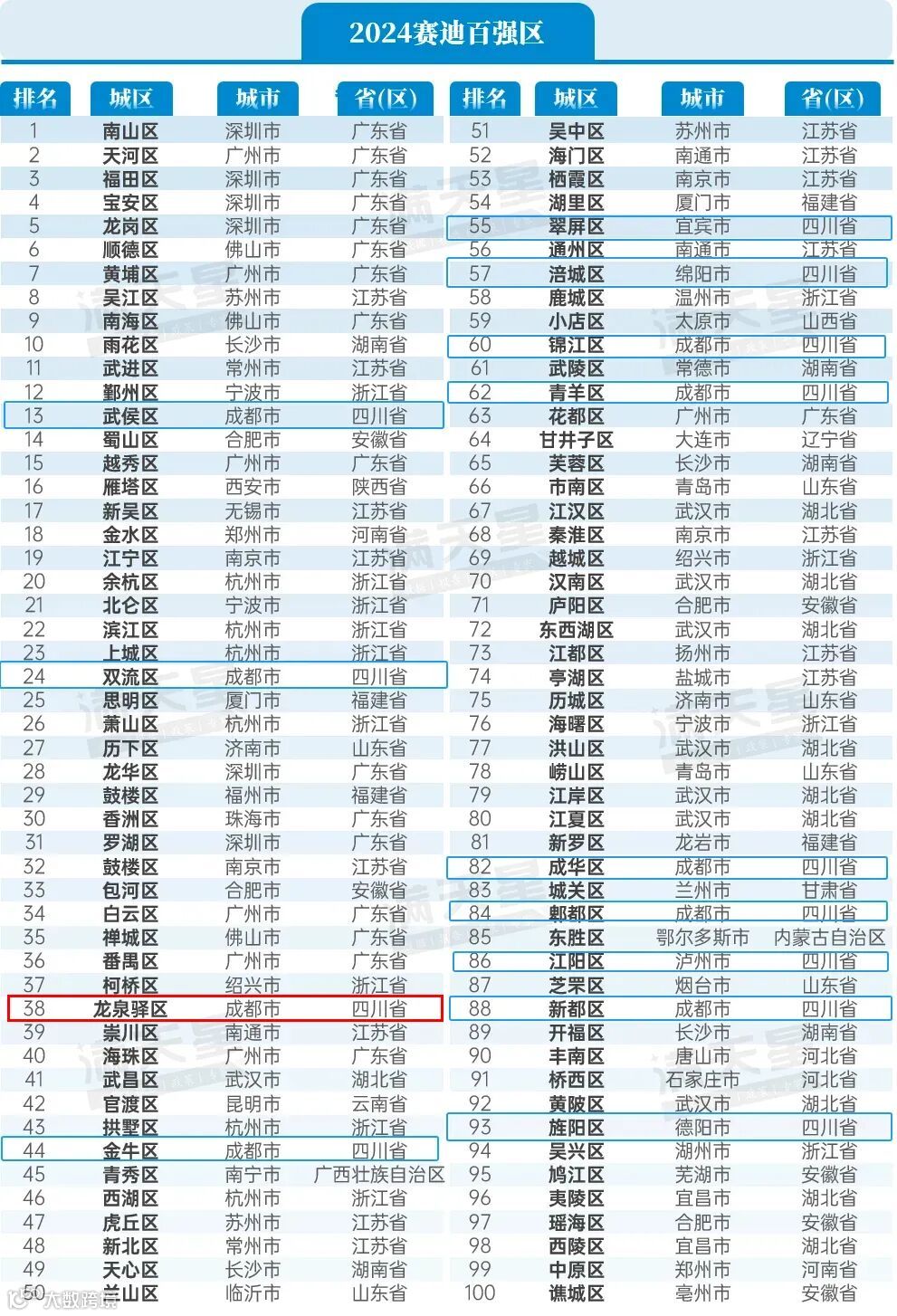 (蓝框内为四川上榜区域)