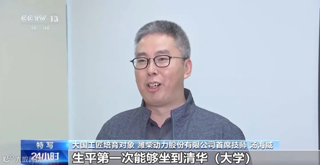大国工匠培育对象、潍柴动力股份有限公司首席技师汤海威说:“生平第一次能够坐到清华大学,我们国内最高等的学府教室里面,也是非常荣幸。”