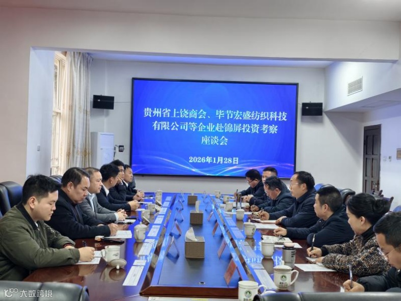 1月28日,贵州省上饶商会会长虞露霖、毕节宏盛纺织科技有限公司董事长程金院率企业考察团赴锦屏县开展投资考察交流活动,并召开座谈会。锦屏县委书记唐标主持会议并讲话,锦屏县领导吴言、龙令炉、王泽梅、欧汉法出席会议,锦屏县相关部门主要负责人参加会议。