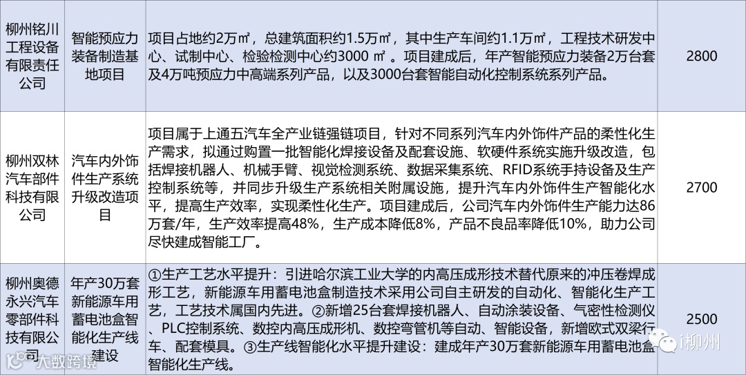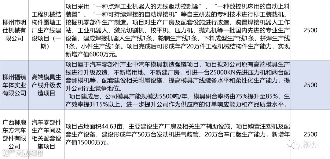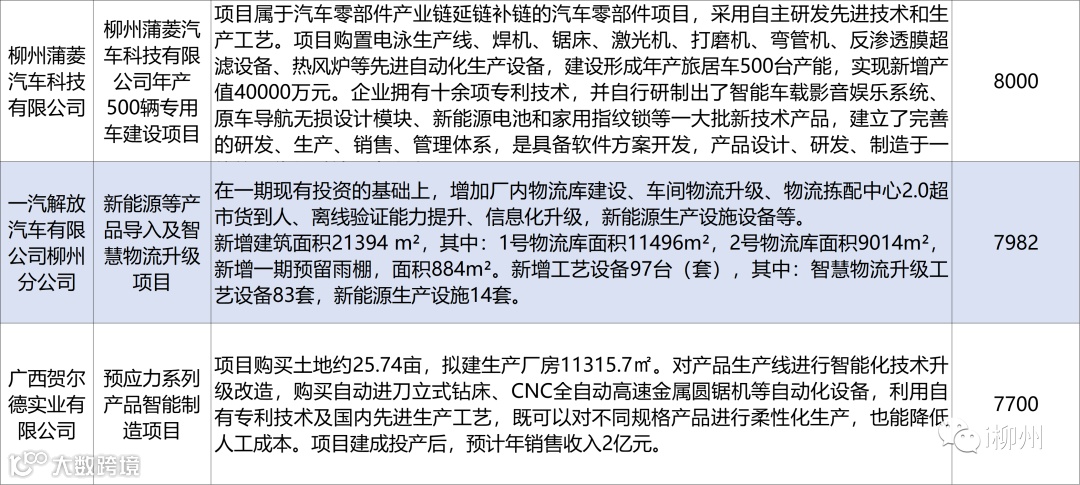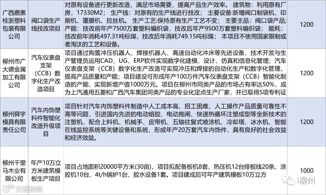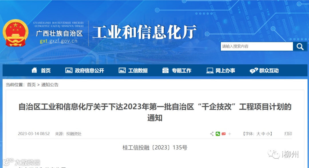 广西工业和信息化厅日前公布2023年第一批自治区“千企技改”工程项目计划名单,柳州有100个项目上榜,总投资234亿元。