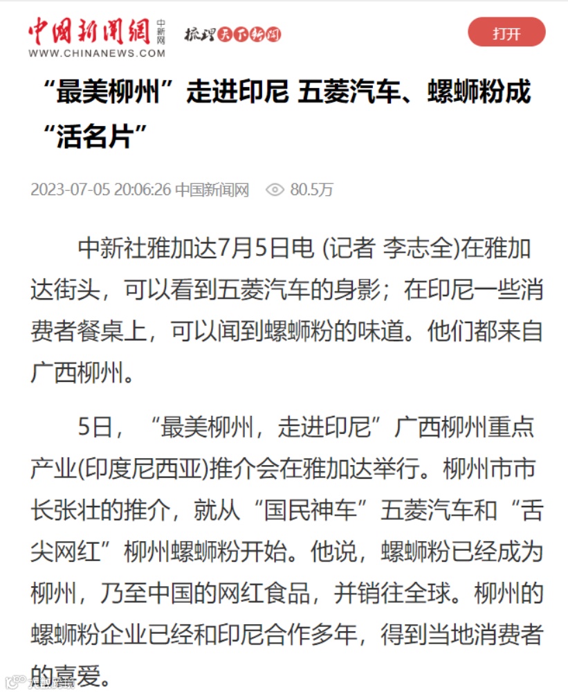 在雅加达街头,可以看到五菱汽车的身影;在印尼一些消费者餐桌上,可以闻到螺蛳粉的味道。他们都来自广西柳州。