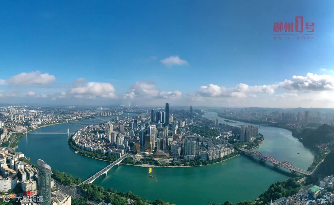 蓝天白云下龙城全景图,一艘水上公交船从柳江上经过(资料图 黎寒池 摄)