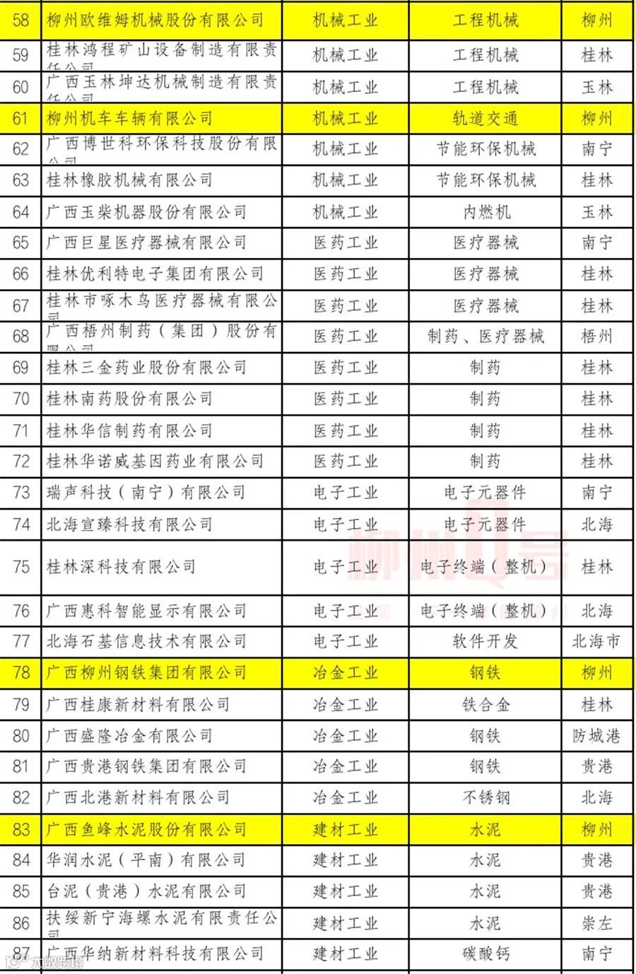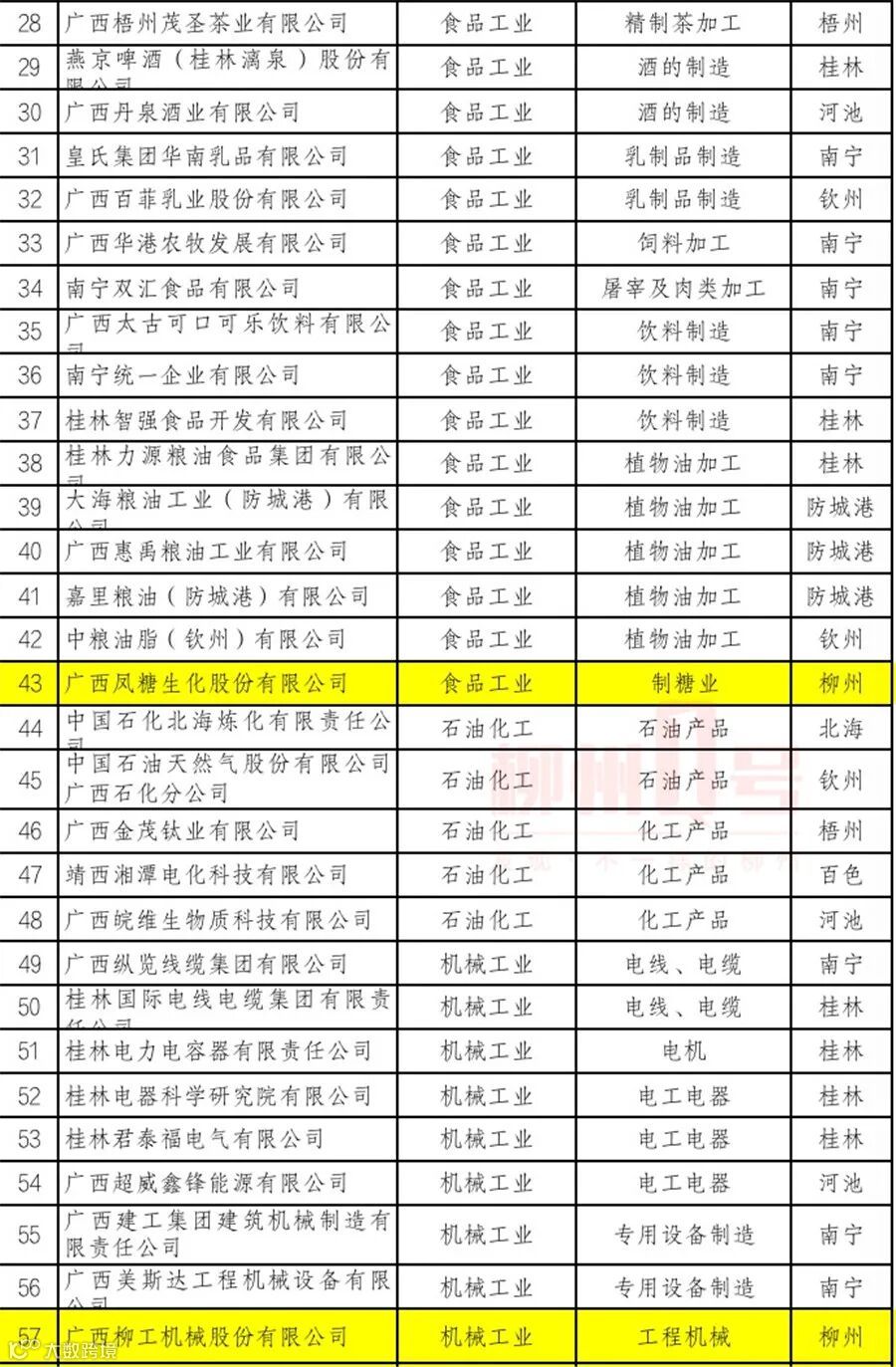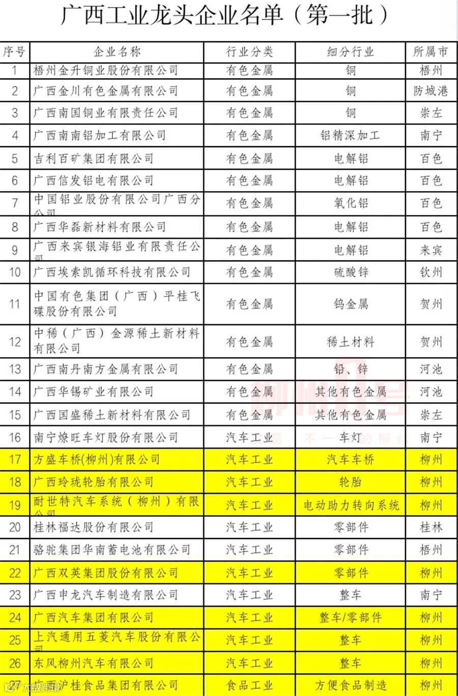广西工业龙头企业名单(第一批)