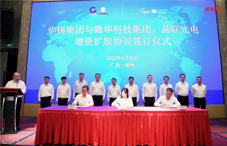 4月25日上午,在吴炜、张壮、刘传林、陈鸿宁等市四家班子领导和广西北部湾国际港务集团有限公司党委副书记谢志双等嘉宾的见证下,广西华锡集团股份有限公司与隆华科技集团(洛阳)股份有限公司、广西晶联光电材料有限责任公司签订了《广西晶联光电材料有限责任公司增资扩股协议》。据悉,三方将发挥资源、技术等方面优势,强强联手推动高端ITO靶材产业项目落户柳东新区,培育壮大铟产业链,促进我市光电产业快速发展。