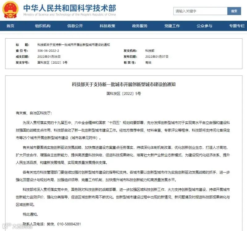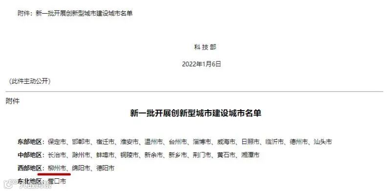 1月7日,科技部印发关于支持新一批城市开展创新型城市建设的通知,支持全国25个城市开展创新型城市建设,柳州市位列其中,成为此次广西唯一获批的地级市。