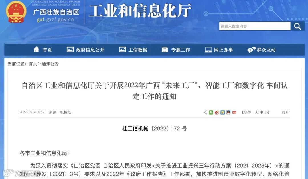 14日,自治区工信厅网站发布关于开展2022年广西 “未来工厂”、智能工厂和数字化车间认定工作的通知。获评企业最高可获得200万元的一次性奖励。