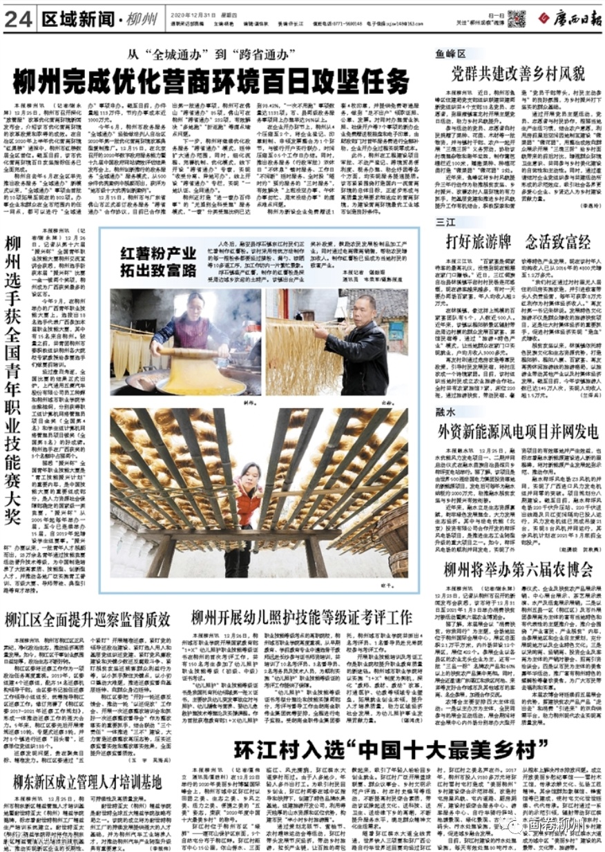 在12月22日举行的2020年美丽乡村博鳌国际峰会上,柳州市城中区环江村以田园之美、生态之美、乡风之美、活力之美、便捷之美的“五美”姿态,荣获“2020年度中国十大最美乡村”的称号。