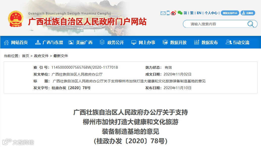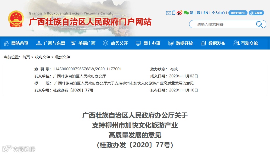 意见明确,大力支持2020年广西文化旅游发展大会承办城市柳州市建设文化旅游特色名城,推进全区文化旅游产业发展迈上新台阶。