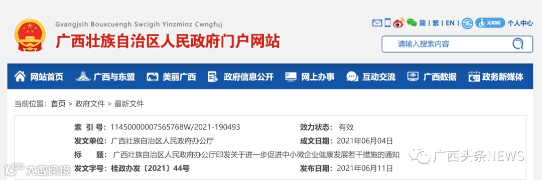 6月11日, 广西印发文件《关于进一步促进中小微企业健康发展的若干措施》,将重点从拓宽融资渠道、引导本地企业入驻标准厂房、加强检验检测质量体系建设、加强信用体系建设等方面支持广西中小微企业健康发展,实施多项激励措施,给到企业真金白银的奖励和帮助。