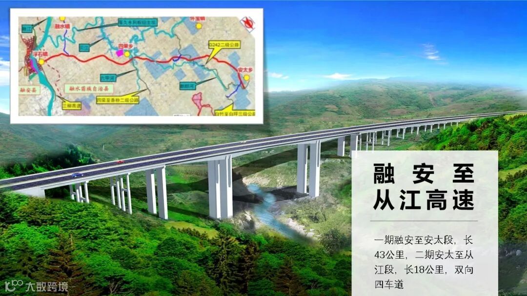 全面推进铁路、公路、水运、航空建设。三江至柳州高速公路、三江至桂林高速公路、柳州至梧州高速公路、阳朔至鹿寨高速公路、融水至河池高速公路等项目实现通车,桂林至柳城高速公路、柳州经合山至南宁高速公路等项目开工建设。