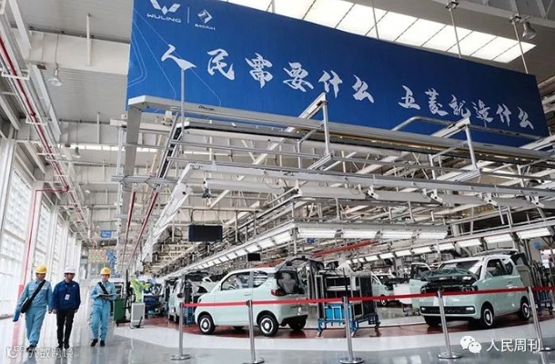 火爆市场的五菱宏光miniEV“马卡龙”正在全速生产,南方电网广西柳州供电局党员服务队上门服务,保障企业生产实现“新电气化”。(李志杰、邹振远 摄)