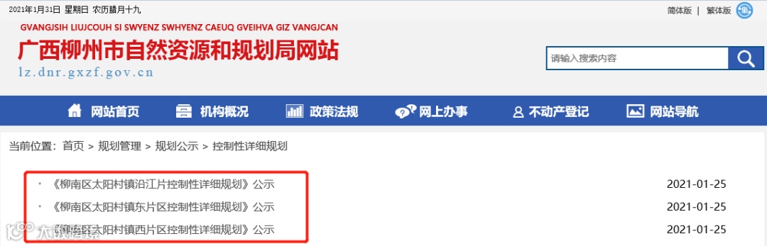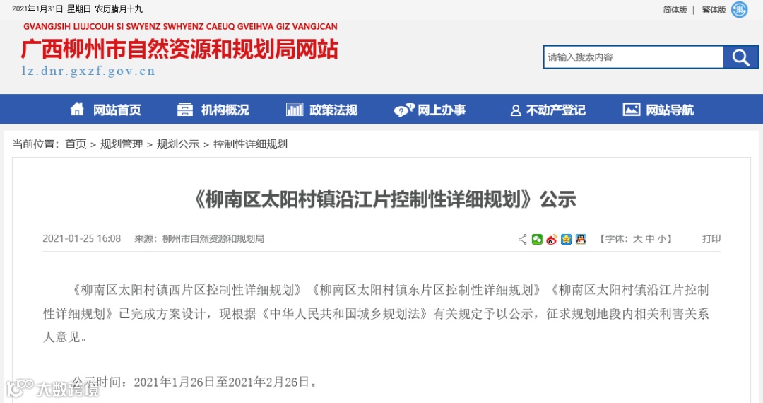 近日,柳州市自然资源和规划局公布太阳村镇3大片区控制性详细规划,公示时间为2021年1月26日至2021年2月26日。