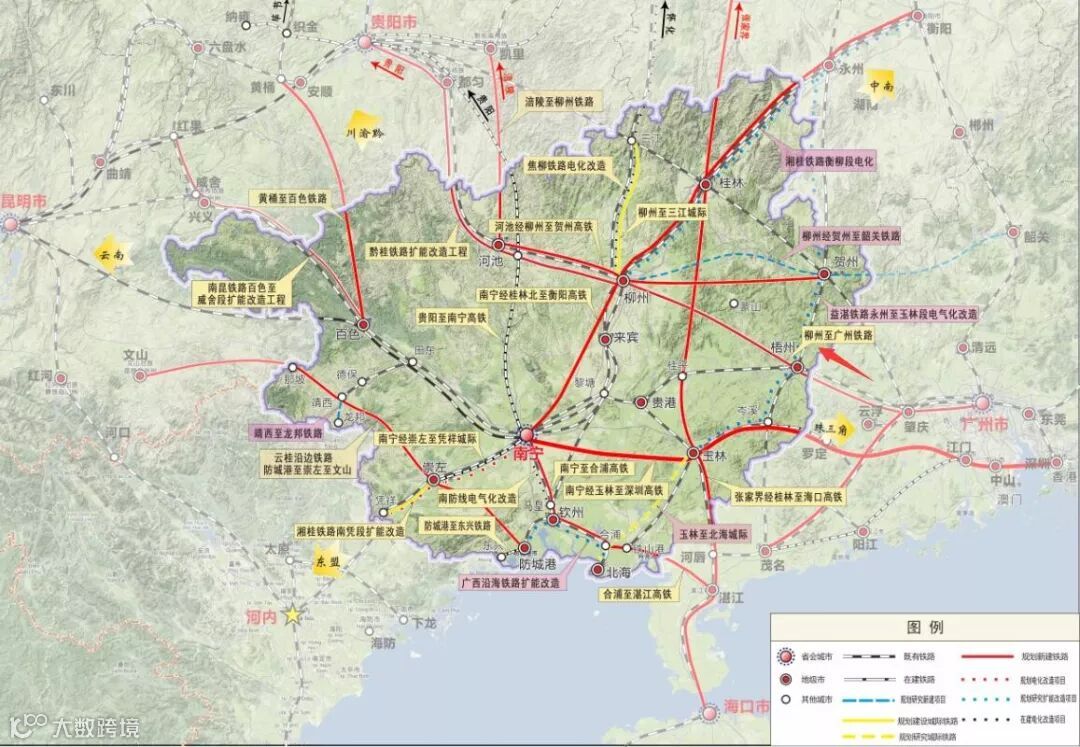 2.黔桂铁路增建二线项目,结合货运需求、相邻路网建设情况及西部陆海新通道中各通道分工、能力利用等统筹研究,积极争取国家资金和政策支持,满足西部地区南下运输和连接中南半岛需要,并将本线作为西部陆海新通道的主要通道之一。