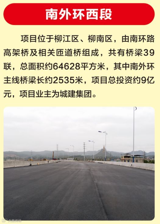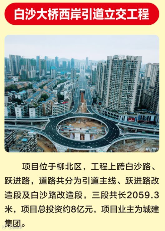 竣工12项,总投资89.22亿元,主要包括:白沙大桥西岸引道立交工程、柳州动车存车场、柳州市工人医院总院搬迁项目(一期)等项目,涵盖了基础设施、产业发展、社会民生等领域。