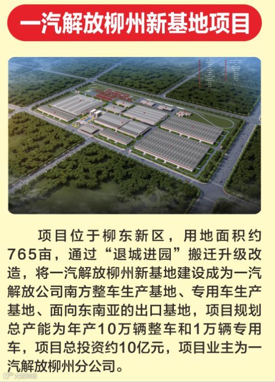 据介绍,此次集中开竣工项目共31项,总投资266.82亿元,其中:开工19项,总投资177.6亿元,主要包括:一汽解放柳州新基地项目、苏宁易购广西桂北智慧电商产业园项目(一期)、柳州市市级粮食储备库整体搬迁项目等。