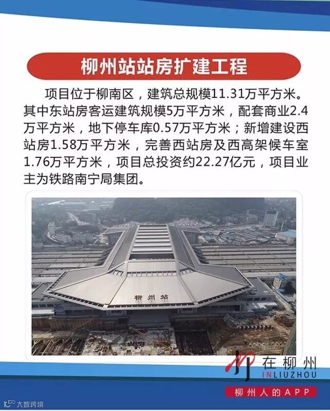 项目位于柳南区,建筑总规模11.31万平方米。其中东站房客运建筑规模5万平方米,配套商业2.4万平方米,地下停车库0.57万平方米;新增建设西站房1.58万平方米,完善西站房及西高架候车室1.76万平方米,项目总投资约22.27亿元,项目业主为铁路南宁局集团。