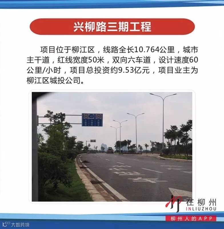 项目位于柳江区,线路全长10.764公里,城市主干道,红线宽度50米,双向六车道,设计速度60公里/小时,项目总投资约9.53亿元,项目业主为柳江区城投公司。
