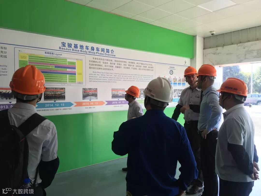 Leif Thomsen一行参观上汽通用五菱宝骏基地的宝骏RS-5生产线。该生产线自动化率100%,实现了机器人自动涂胶、机器人滚边、机器人焊接、机器人装件。