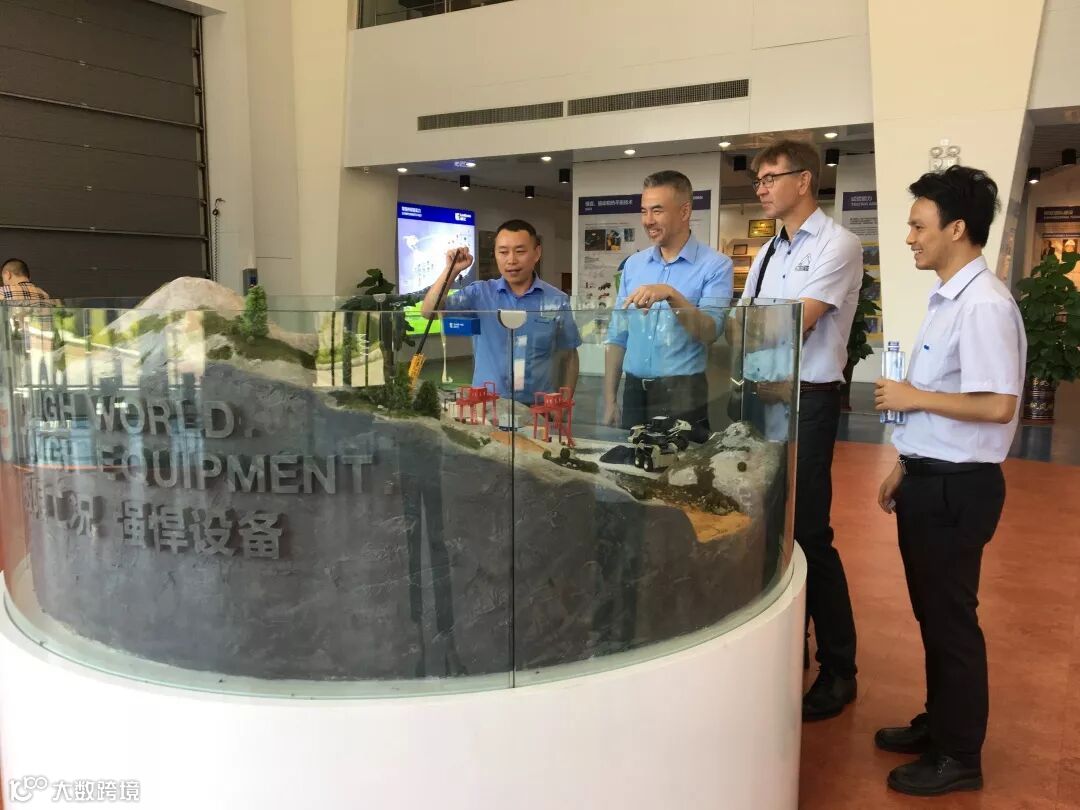 在柳工全球研发中心研究总院新技术研究所,柳工工程师向Leif Thomsen针对柳工装载机、挖掘机和平地机等系列产品进行介绍。