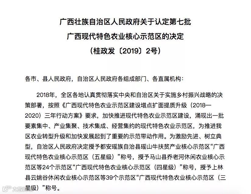 《关于认定第七批广西现代特色农业核心示范区的决定》