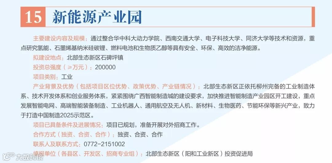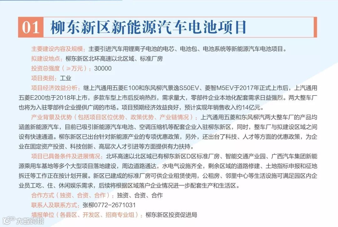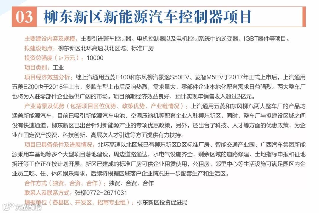我局将陆续推出柳州投资合作项目介绍