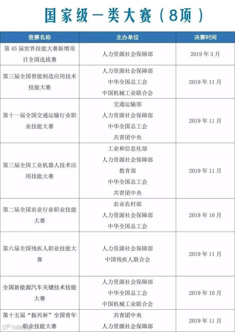 4月1日,人社部印发《关于组织开展2019年中国技能大赛的通知》,决定组织开展2019年中国技能大赛。参赛获奖选手,有望授予荣誉称号、晋升职业资格。具体而言:
