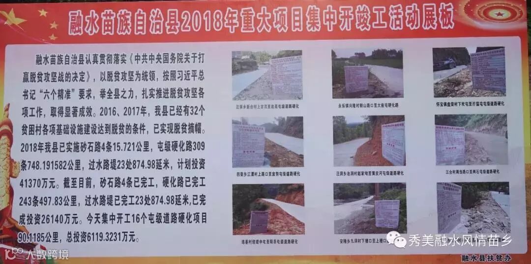 分别是苗家小镇易地扶贫搬迁县城城南片区安置项目一期、苗家小镇易地扶贫搬迁县城城南片区安置项目二期、融水县水东新区融东大道工程、融水元宝山-贝江旅游开发项目一期(区级层面重大项目)、融水县康田生态农业加工项目(区级层面重大项目)、良寨安全至洞头六进行村公路、大坡至大伞(含支线)乡村公路、乐园桥、融水屯级道路建设。