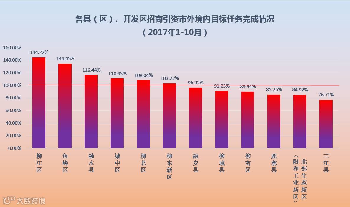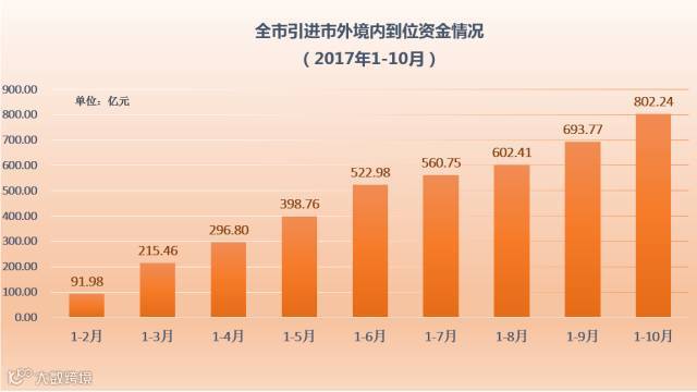 全市引进市外境内到位资金(含续建项目) 802.24亿元,同比增长18.91%,完成市政府下达市外境内年度目标任务750亿元的106.97%;其中区外境内到位资金697.57亿元,同比增长16.25%,完成市政府下达区外境内年度目标任务665亿元的104.90%;
