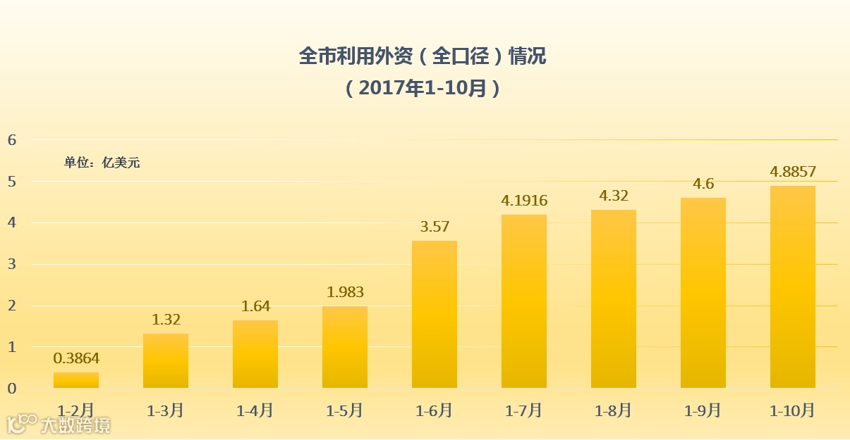 全市全口径利用外资(含商务口径)4.8857亿美元,完成市政府下达年度目标任务5.2亿美元的94.00%,同比增长15.77%。