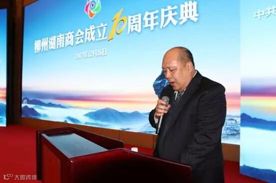 柳州湖南商会会长冯旭林在会上发言