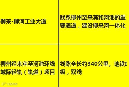柳州经来宾至河池环线城际轻轨(轨道)项目,建设期限为2018-2023年,线路全长约340公里,按照地铁I级、双线建设;
