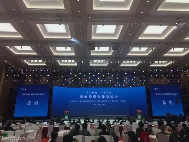第七届潮商大会还在南宁国际会展中心举行投资发展推介会,广西14个地级市,广东4市分别在活动现场介绍本地投资环境和发展优势。