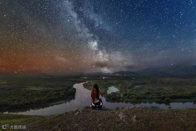 夜晚,繁星密布,银河皎皎