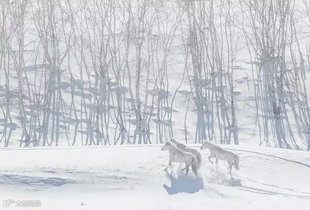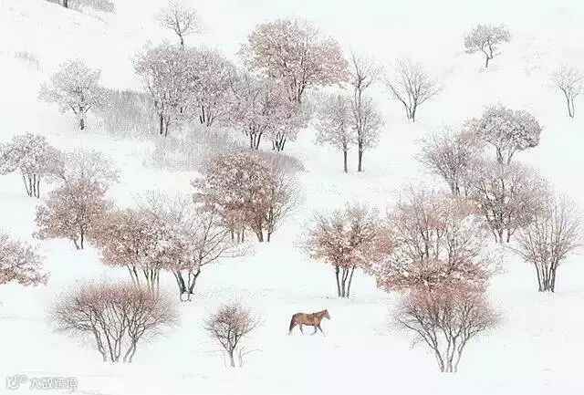 还在白雪皑皑的草原上留下串串的蹄印