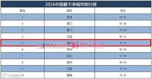 2016中国最干净城市排行榜