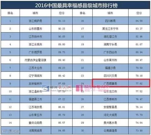 中国最具幸福感县级城市排行榜