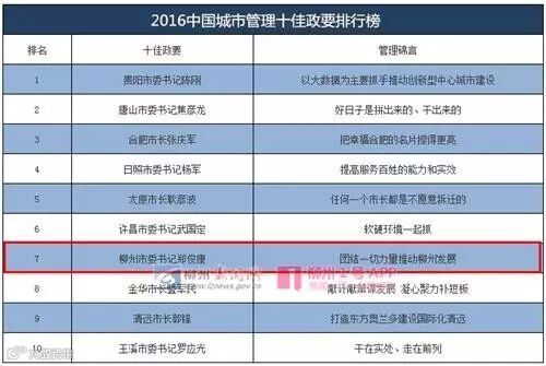 2016中国城市管理十佳政要排行榜