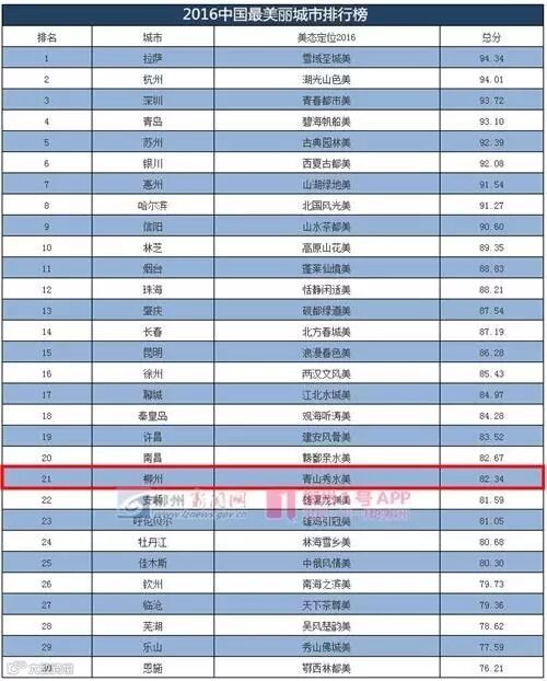 2016中国最美丽城市排行榜