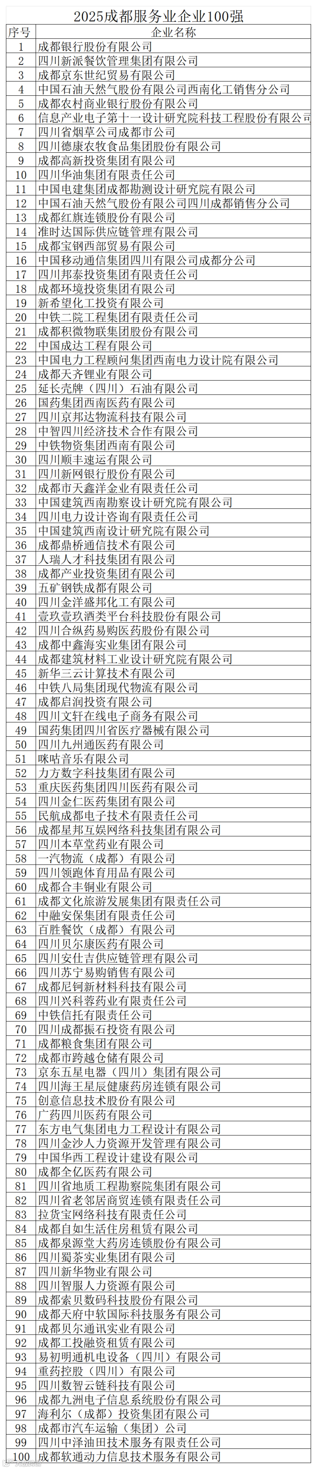 成都企业联合会会长许晓舟分析了今年榜单的特点以及背后呈现的趋势。他介绍说,今年的入围门槛创历史新高。2025成都企业100强榜单入围门槛营业收入为39.54亿元,较上年提高6.48亿元,同比增长19.60%。“这一数据不仅直观印证了成都头部企业梯队的整体竞争力稳步跃升,更从核心指标层面折射出全市企业发展韧性持续增强、经济运行呈现持续回升向好的良好态势。”